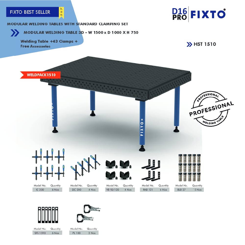 The WELDPACK1510 Modular Welding Table with Standard Clamping Set is expertly engineered for precision, strength, and flexibility. Built to meet the demands of modern fabrication, this welding solution includes 43 high-quality clamps, essential accessories, and a reliable welding holder to maximize workflow efficiency and accuracy on every project.